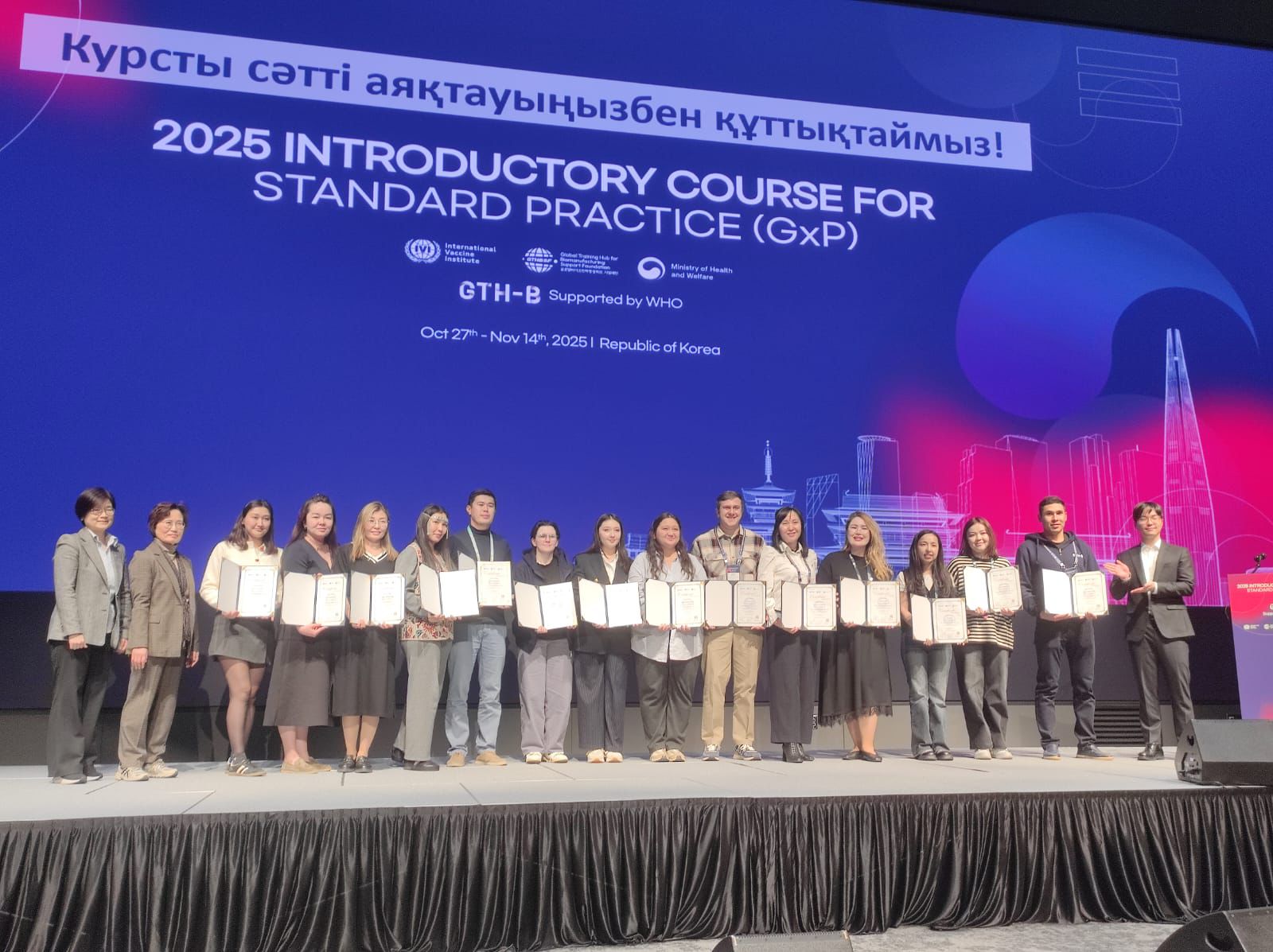 2025 жылғы 27 қазан мен 14 қараша аралығында БҚПҒЗИ мамандары – А. Жақыпбек, А. Әбдімұхтар, А. Абдықалық, М. Алмежанова және А. Сагимбаева – Сеулдегі International Vaccine Institute (IVI) өткізген GxP…