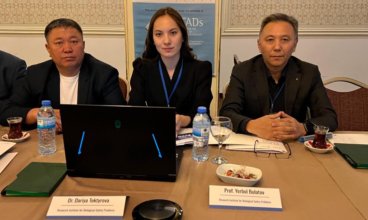 Іс-шараны БҰҰ «Азық-түлік және ауыл шаруашылығы ұйымы» (ФАО) және «Халықаралық эпизоотиялық бюро» (ХЭБ/WOAH) ұсақ күйіс қайыратын жануарлардың обасын бақылау мен жоюдың жаһандық стратегиясын (PPR-GCES) іске асыру шеңберінде ұйымдастырды. Институт атынан аталған іс – шараға С.Ш. Нурабаев – Бас директордың өндіріс жөніндегі орынбасары; Е.А. Булатов – «Микроорганизмдерді өсіру технологиясы» зертханасының меңгерушісі; Д.С. Тоқтырова – «Микроорганизмдерді өсіру технологиясы» зертханасының аға зертханашысы қатысты.